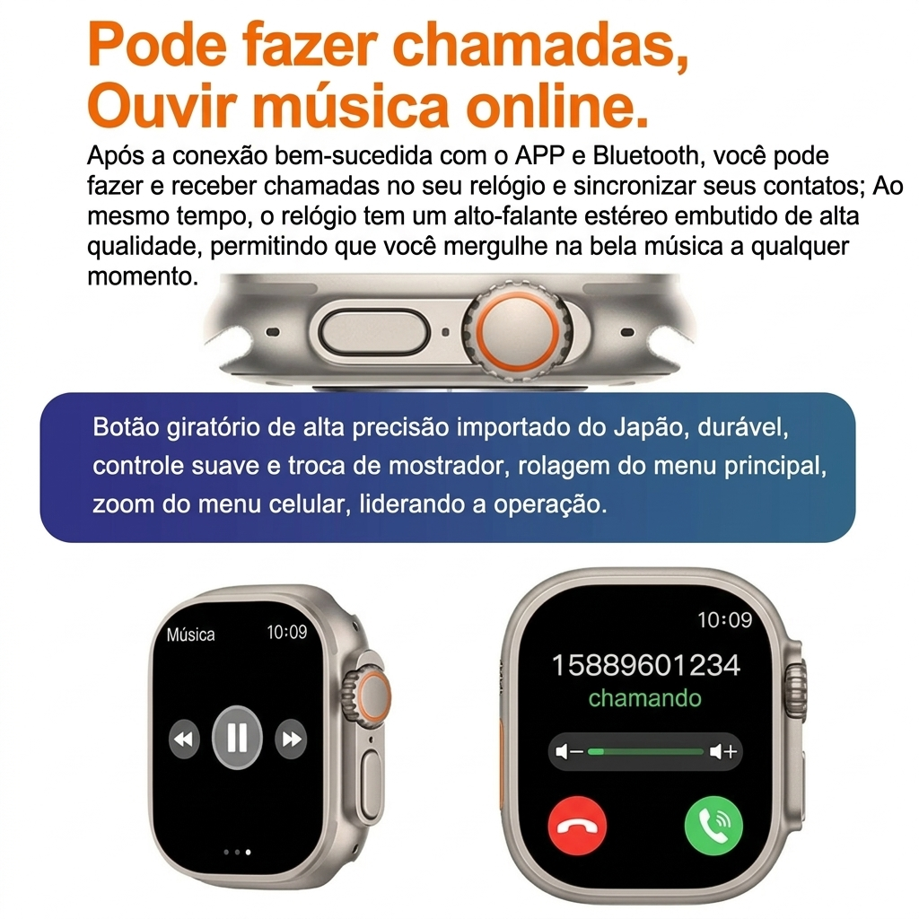 O Smartwatch T800 Ultra 3 MAX NFC é a escolha ideal para quem busca tecnologia, estilo e praticidade no dia a dia. Com design moderno, tela ampla em alta definição e diversas funções inteligentes, ele acompanha você em atividades esportivas, trabalho e momentos de lazer.